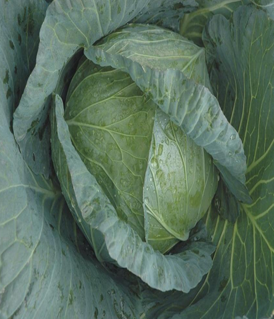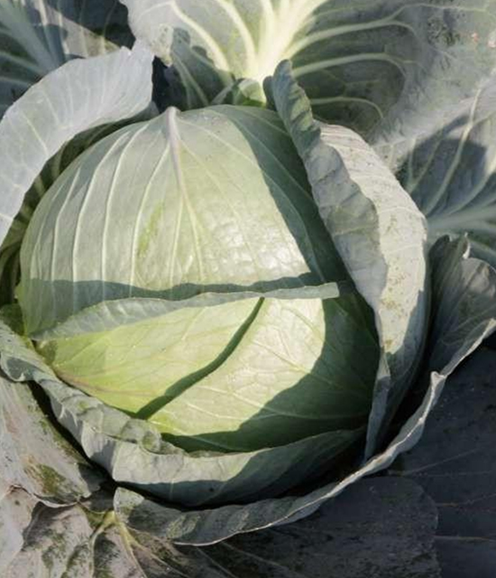Flat round, compact with bluish green head, average head weight 3.75 – 4.5 kg.
