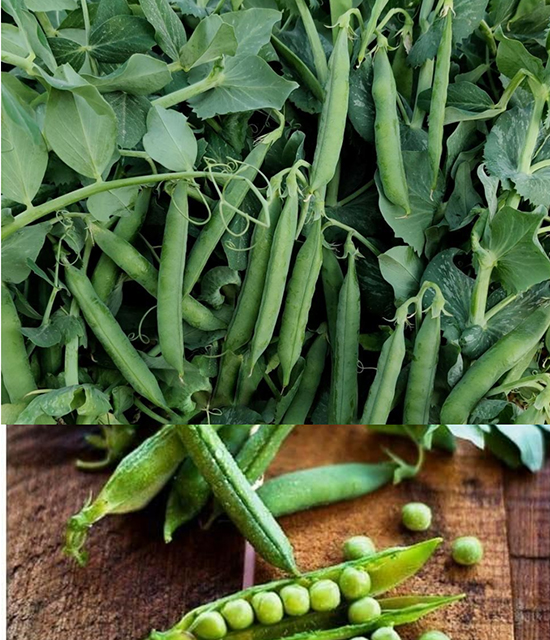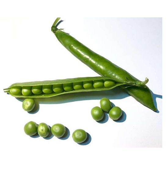 Naturally green 9-10 peas in single pod.